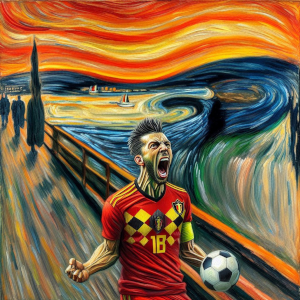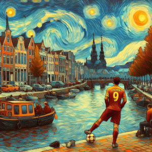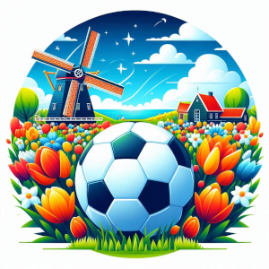 Logo com a bola no centro e tulipas e moinho holandeses no fundo.